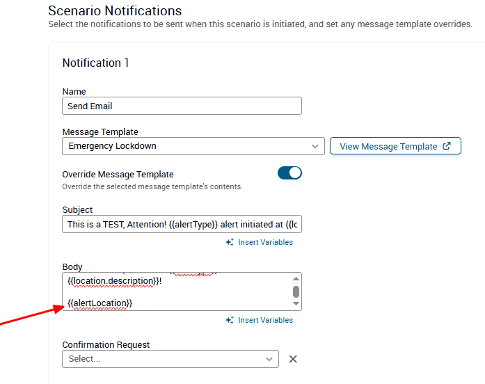 - Create your custom notification. Wsper sends the {{alertType}} and the {{location.description}} and the google maps url, {{alertLocation}} to infromacast which can be used as variables in the notifcations. Click Save when done.